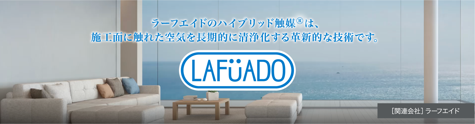 ハイブリッド触媒®のコーティング施工および空調機用フィルターの販売は関連会社の株式会社ラーフエイドが行っています。