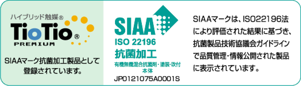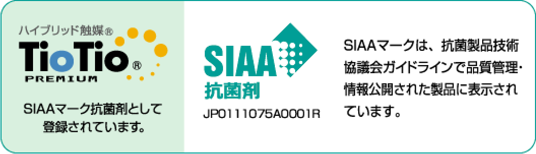 SIAA(抗菌製品技術協議会)が制定した抗菌のシンボルマークです。「抗菌性」「安全性」「適切な表示」の3つの基準を満たした製品にSIAAマークが表示されます。