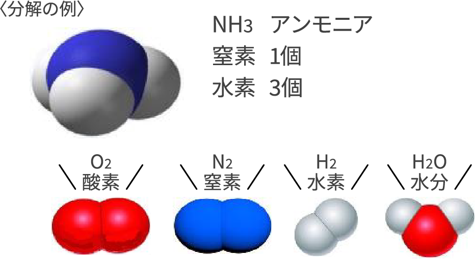 分解されたアンモニアの元素は、周りの酸素や水分と結びつきます。